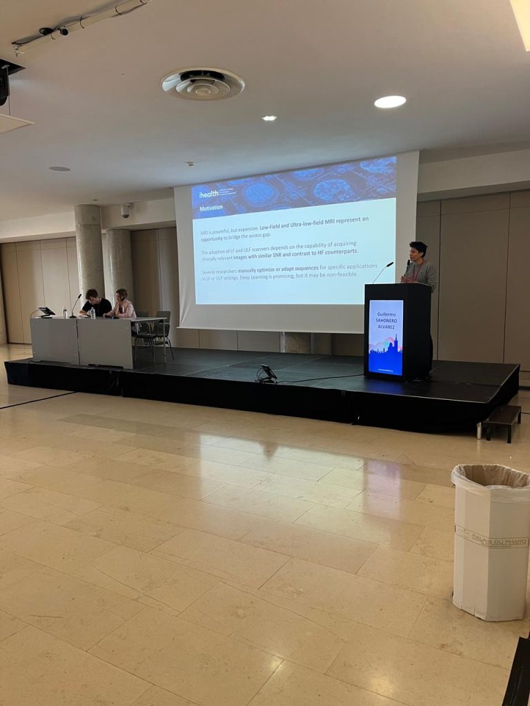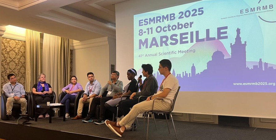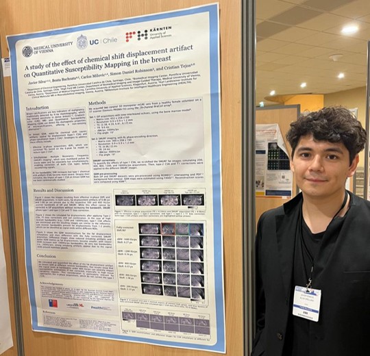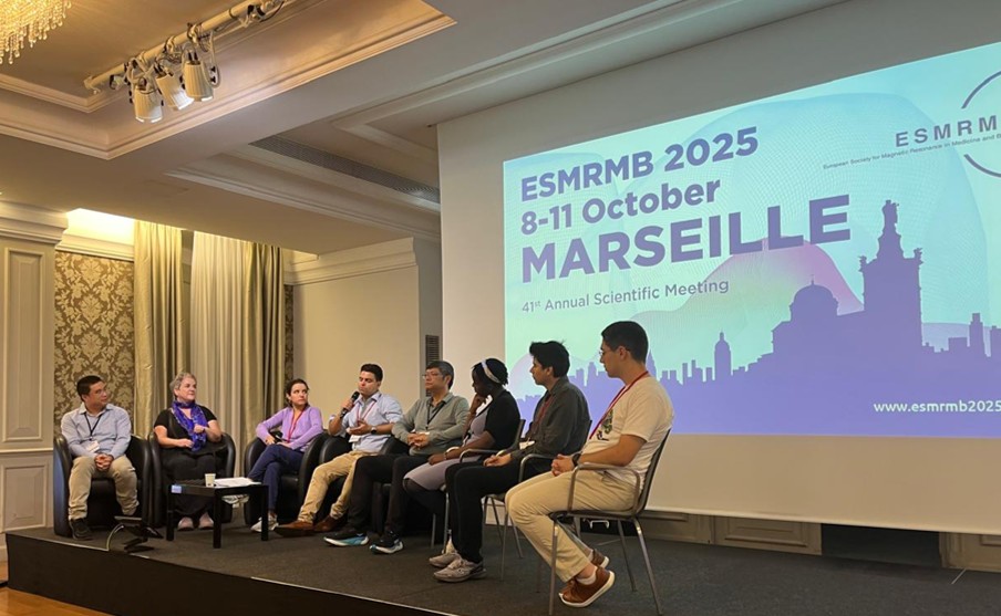Cuatro integrantes del Centro de Imágenes Biomédicas UC participaron activamente en la Reunión Anual de la Sociedad Europea de Resonancia Magnética en Medicina y Biología (ESMRMB 2025), uno de los congresos científicos de mayor relevancia mundial en el ámbito de la imagenología médica. En ese marco, los investigadores Rocío Artigas, Cristián Montalba, Guillermo Sahonero y Javier Silva presentaron sus últimos avances en resonancia magnética, representando a la Pontificia Universidad Católica de Chile en un espacio de intercambio académico de alto nivel.